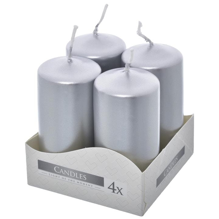 Te klasyczne świece w kolorze srebrny metalik pakowane w blister po 4 sztuki w przyjemny sposób rozświetlą każde wnętrze.