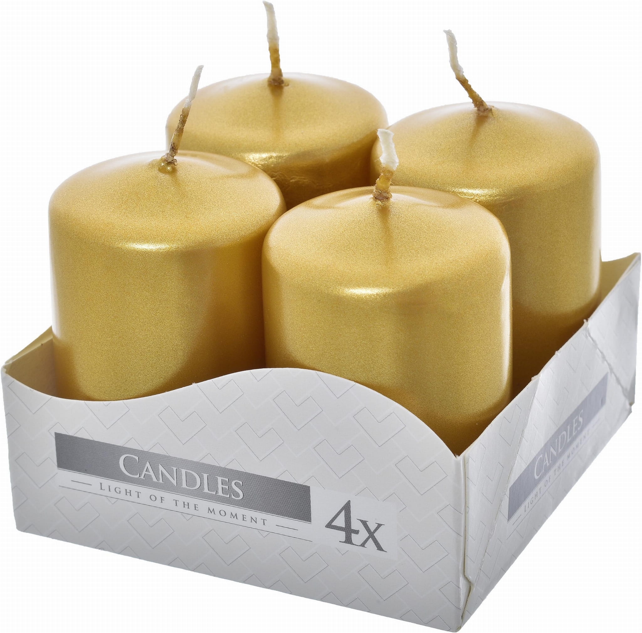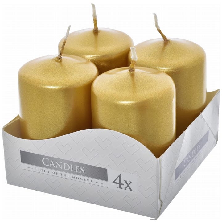 Te klasyczne świece w kolorze złoty metalik pakowane w blister po 4 sztuki w przyjemny sposób rozświetlą każde wnętrze.