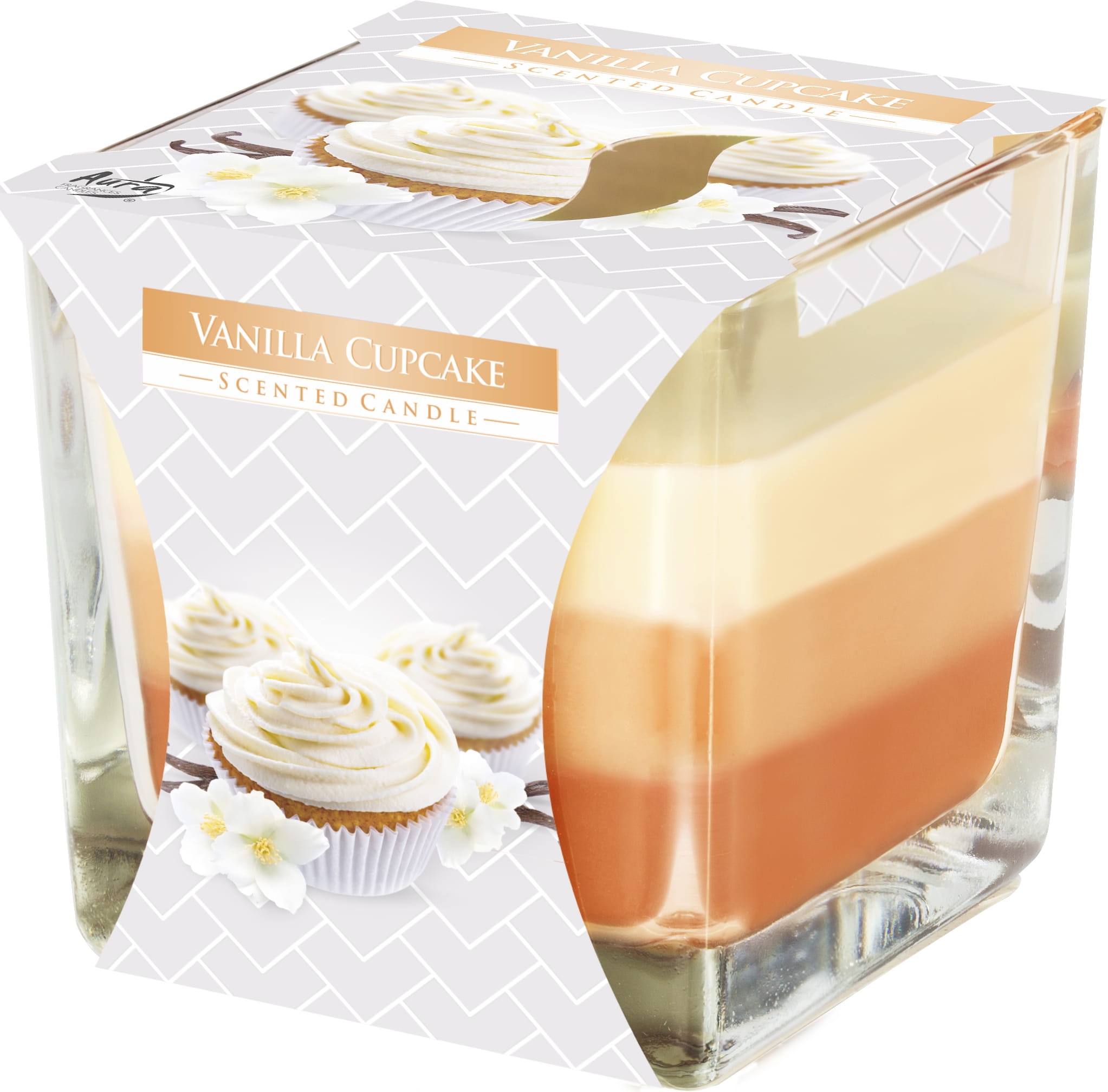 ŚWIECA ZAPACHOWA W SZKLE TRÓJKOLOR. CIASTECZKO WANILIOWE