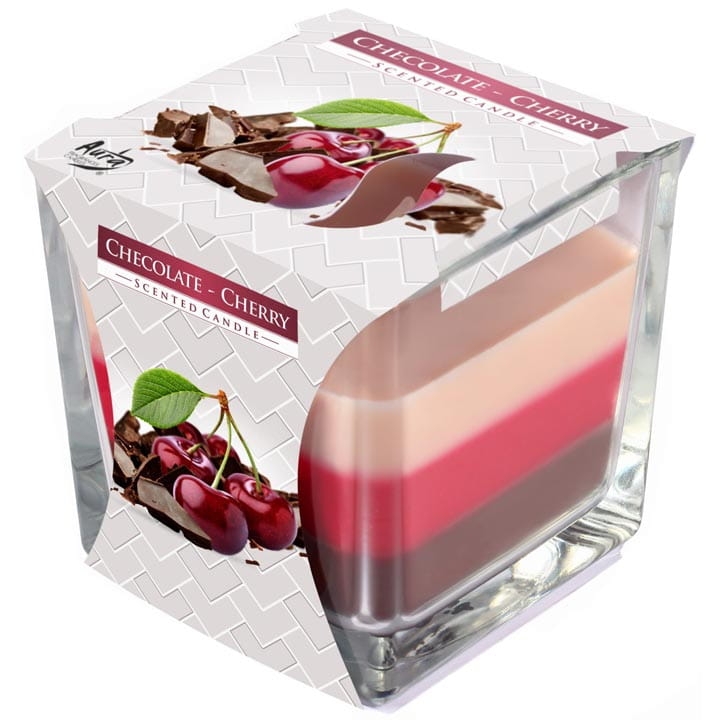 ŚWIECA ZAPACHOWA W SZKLE TRÓJKOLOR. WIŚNIA/CZEKOLADA