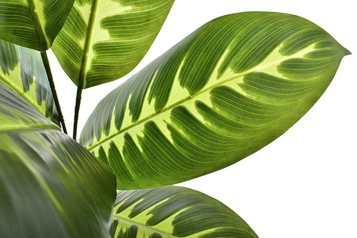 Roślina prezentuje się niesamowicie ze względu na grube, cieniowane liście z widocznym unerwieniem.