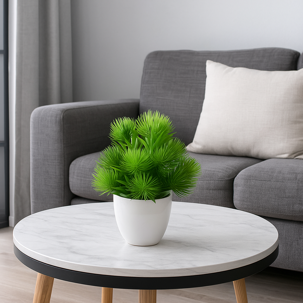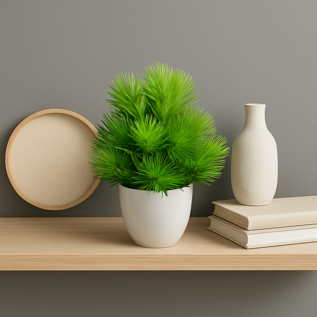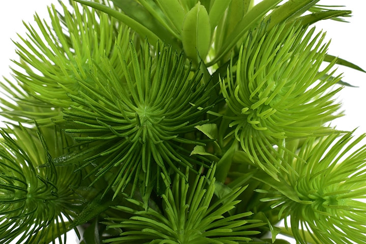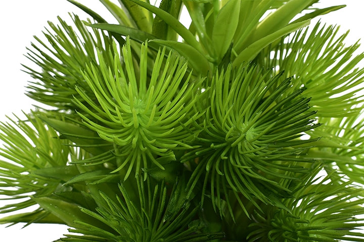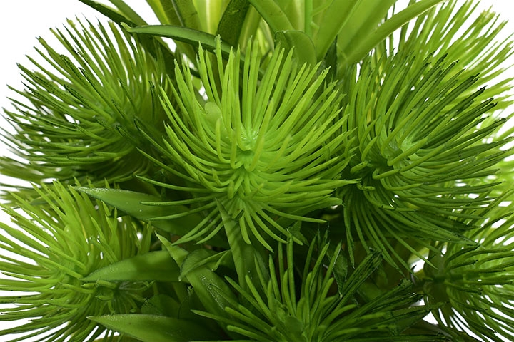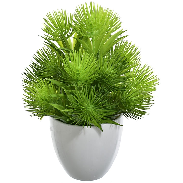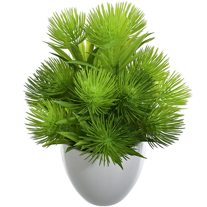 Efektowna i nietuzinkowa kompozycja sztucznej rośliny o igiełkowatych kwiatostanach w eleganckiej białej doniczce to świetny sposób na dodanie wyrazistego akcentu zieleni w Twoim wnętrzu – bez potrzeby podlewania i pielęgnacji.