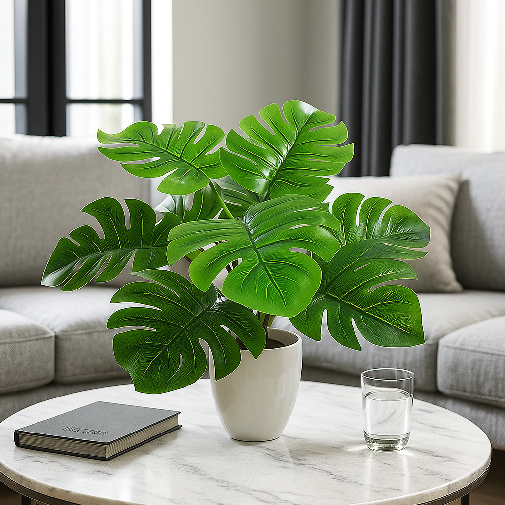 Sztuczna monstera w białej doniczce – tropikalny akcent w Twoim wnętrzu