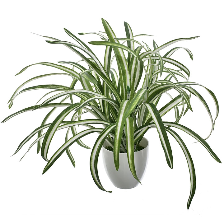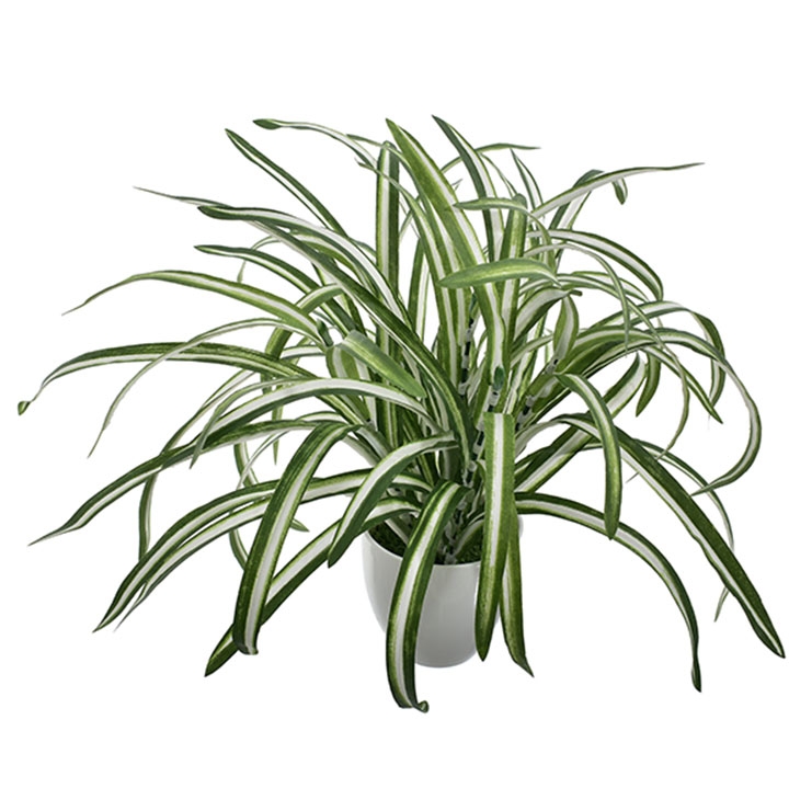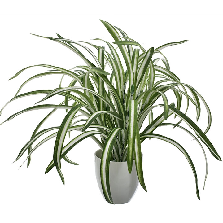Dynamicznie ułożone, podłużne liście w różnych odcieniach zieleni doskonale imitują naturalną roślinę, nadając pomieszczeniu świeżości i lekkości.