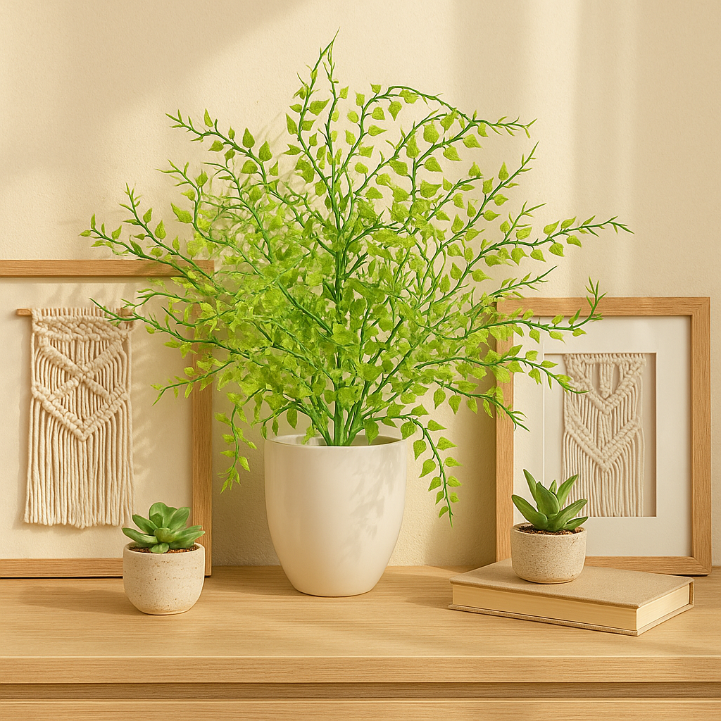 Sztuczna roślina z drobnymi listkami – lekka i stylowa dekoracja do każdego wnętrza