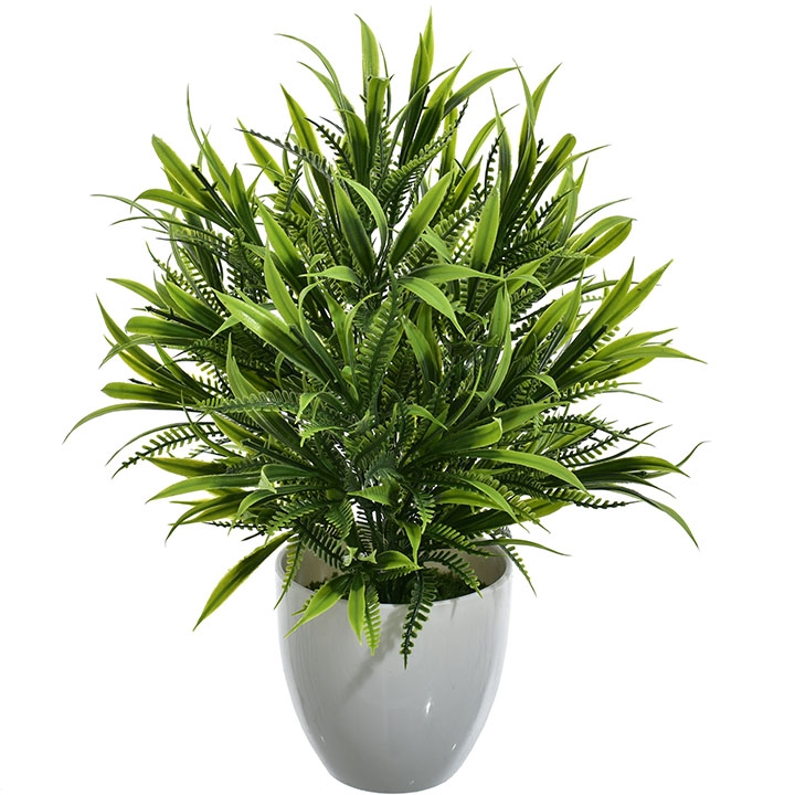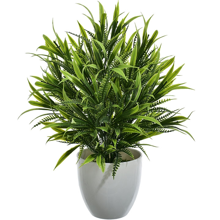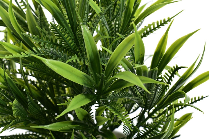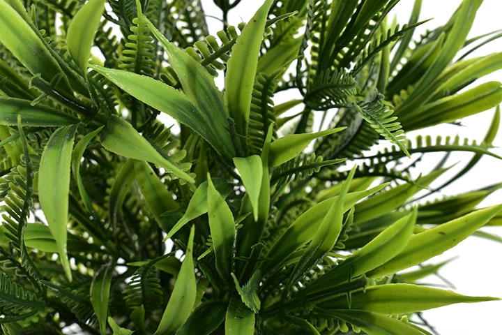 Nowoczesna i niezwykle efektowna sztuczna roślina o gęstych, smukłych liściach to idealna propozycja dla osób ceniących elegancką zieleń, która zawsze wygląda perfekcyjnie.