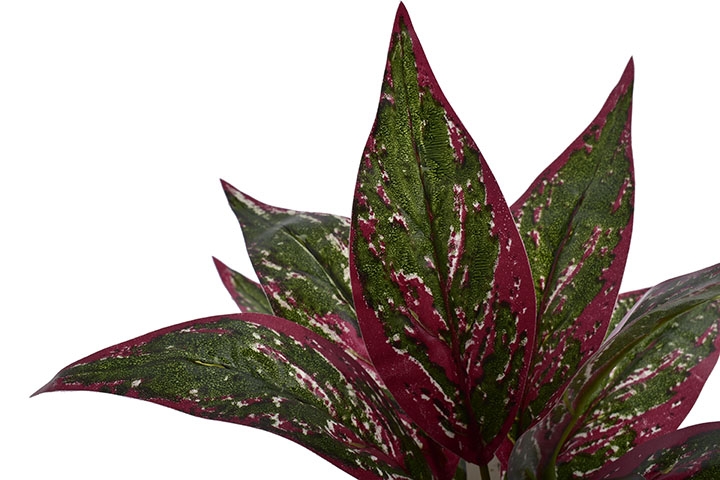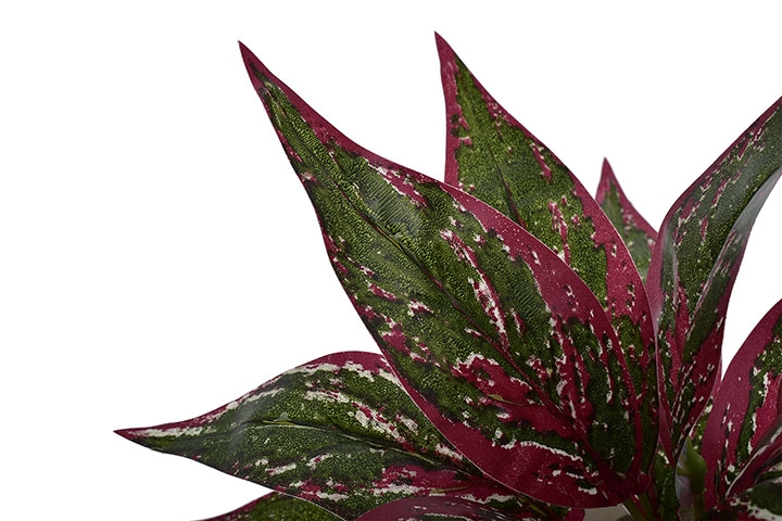 ✅ Liście w żywych odcieniach czerwieni i zieleni – efektowna imitacja egzotycznej rośliny