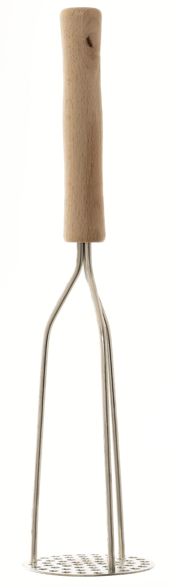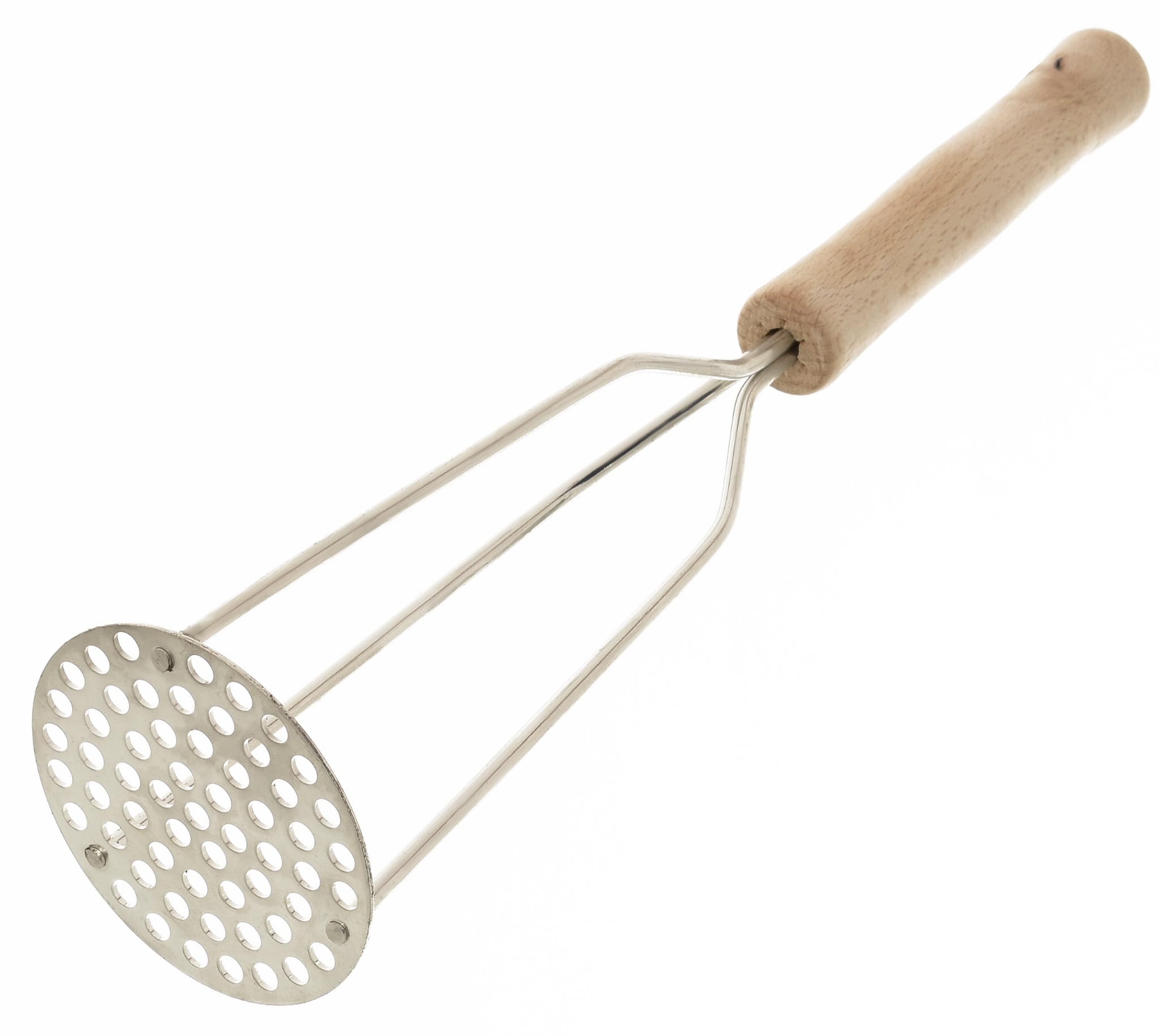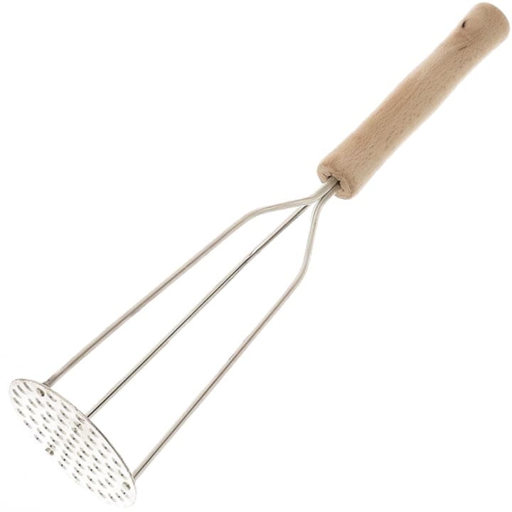 Tłuczek wykonany jest z wysokiej jakości stali z solidną drewnianą rączką. Tłuczek to praktyczny sprzęt, który ułatwi szybkie przygotowanie puree ziemniaczanego i twarogu. Ugniatacz można również użyć do rozgniecenia owoców np. truskawek do przygotowania deserów lub dżemów.