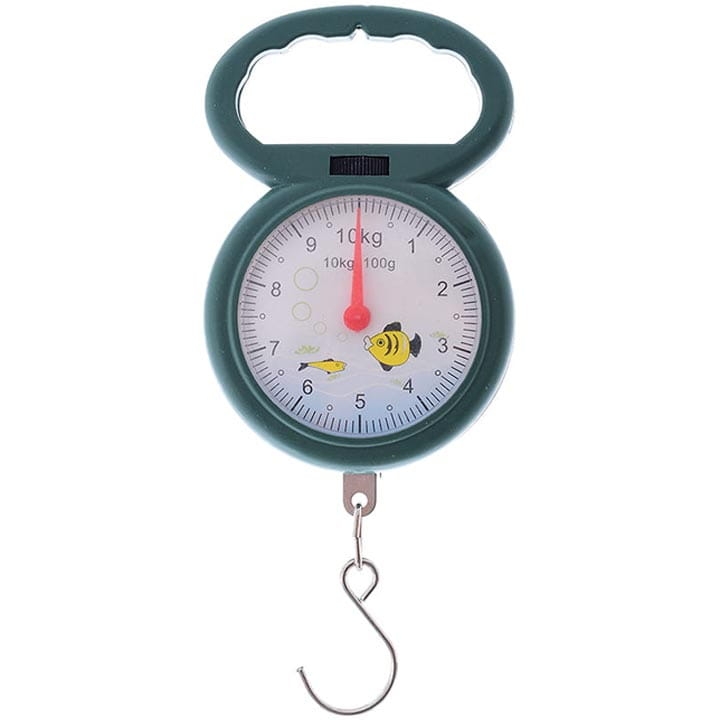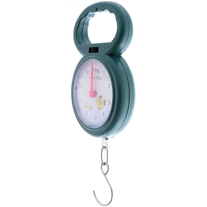 Mechaniczna waga wędkarska o maksymalnym obciążeniu do 10 kg.