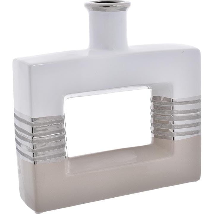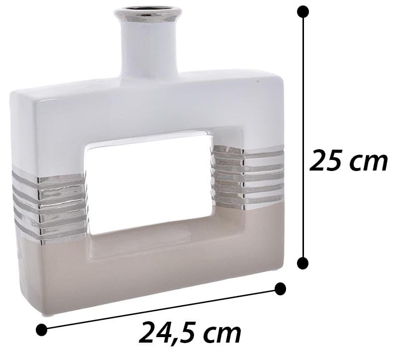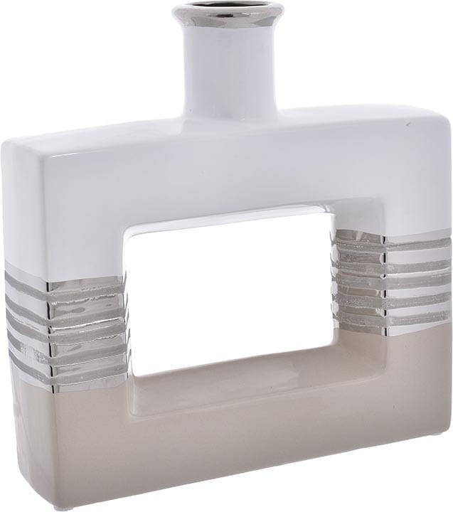 WAZON CERAMICZNY Z DZIURĄ BIAŁO-BEŻOWO-SREBRNY H-25 CM