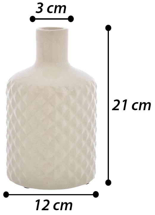Wykonany z wysokiej jakości ceramiki, szkliwiony, z tłoczonym karbowaniem w kształcie butelki.