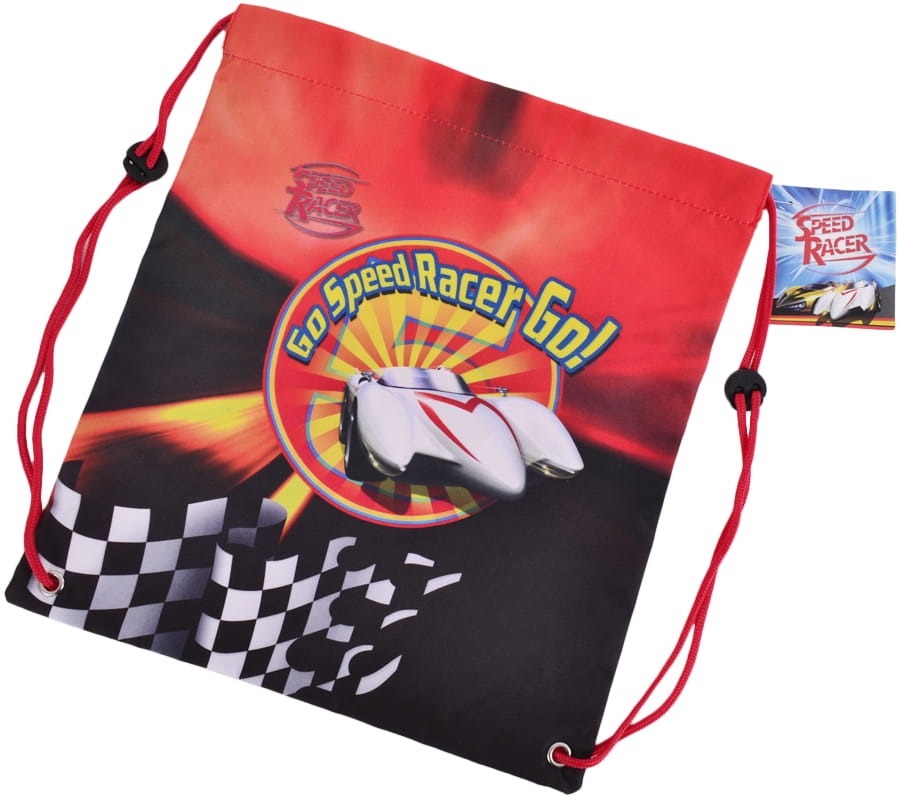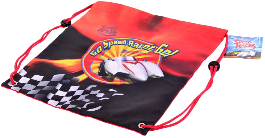 Ozdobiony sportowym samochodem na czerwono - czarnym tle.