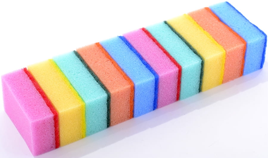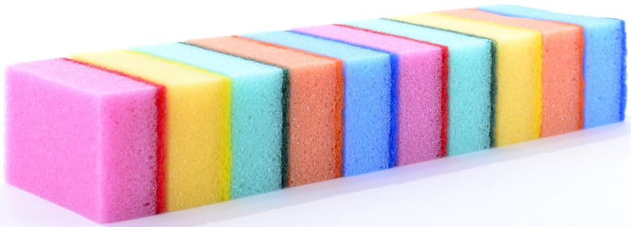 Zmywaki do naczyń wykonane z trwałej pianki którą cechuje wysoka gęstość oraz z oryginalnej fibry.